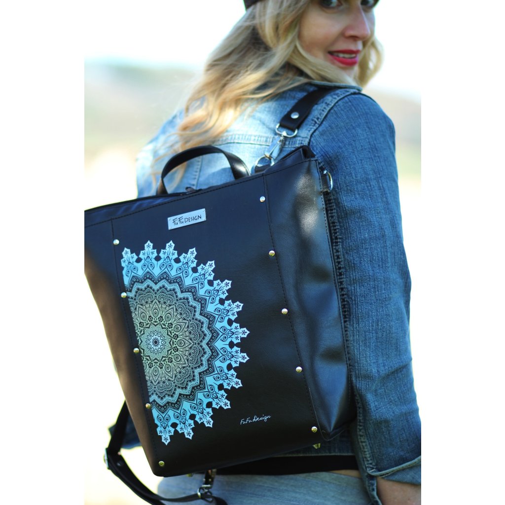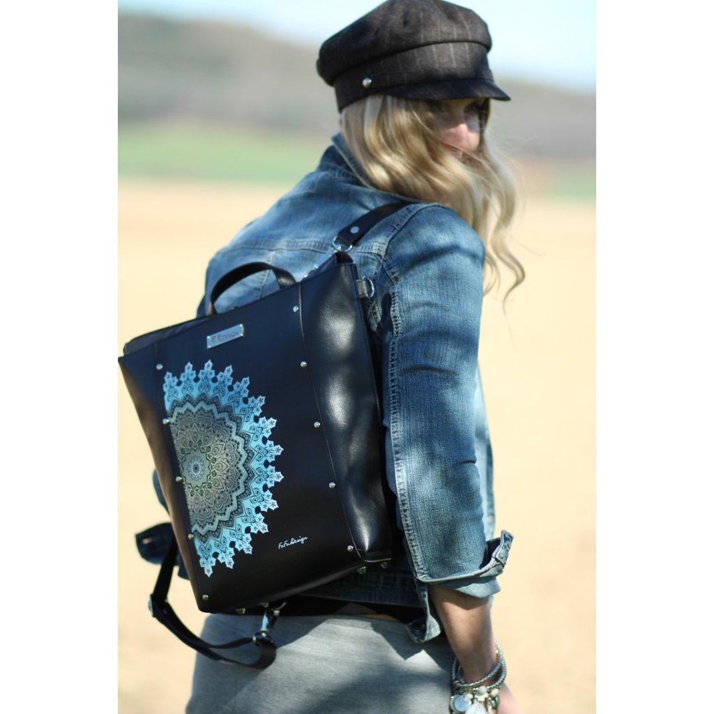 Batohokabelka - vhodná na záda jako batoh a zároveň jako crossbody kabelka s dlouhým popruhem. Velmi kvalitní syntetická useň připomínající pravou kůži, skvěle drží tvar a neošoupe se, neodře se ani opravdu dlouhodobým nošením, stále bude vypadat jako nová. Střih s širokým vyztuženým dnem poskytuje velký úložný prostor i pro A4.