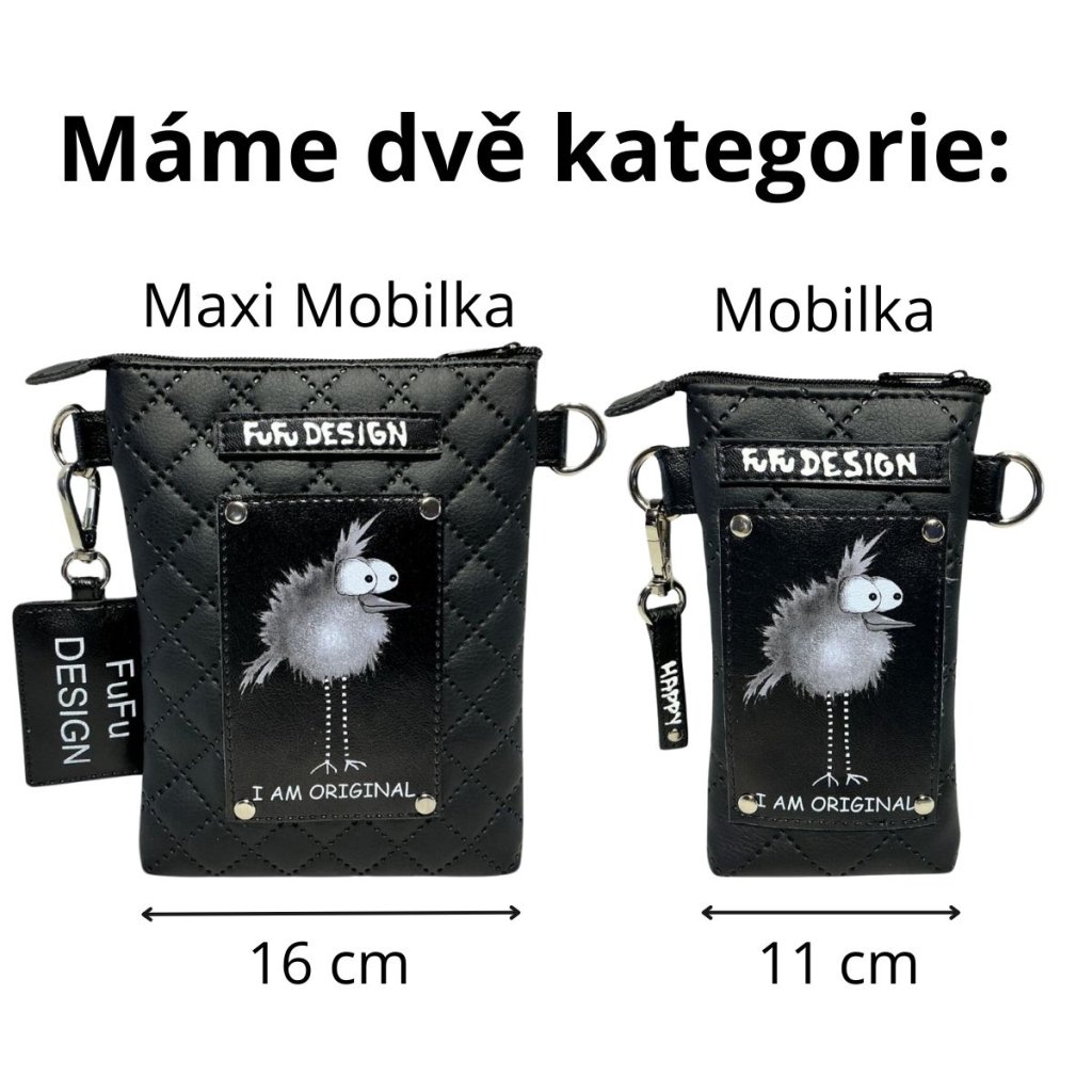 Mobilka – kabelka z měkké eko-kůže nejen na mobil, ale i na další drobnosti - klíče či peníze. Popruh je odepínací, takže kabelku bez popruhu můžete využít i jako obal na mobil.