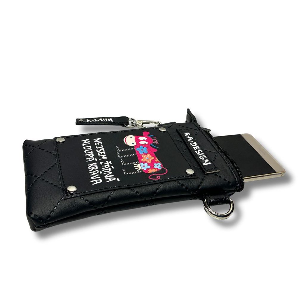 Mobilka – kabelka z měkké eko-kůže nejen na mobil, ale i na další drobnosti - klíče či peníze. Popruh je odepínací, takže kabelku bez popruhu můžete využít i jako obal na mobil.