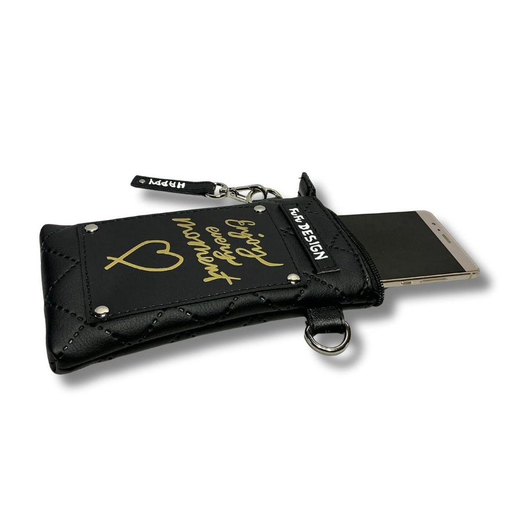 Mobilka – kabelka z měkké eko-kůže nejen na mobil, ale i na další drobnosti - klíče či peníze. Popruh je odepínací, takže kabelku bez popruhu můžete využít i jako obal na mobil.