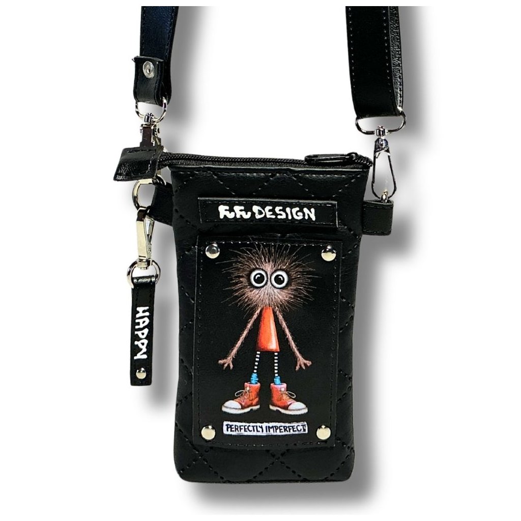 NÁŠ BOŽAN TURBÍK - Mobilka s FuFu Božanem (protože je prostě božíííí! :-) – kabelka z měkké eko-kůže nejen na mobil, ale i na další drobnosti - klíče či peníze. Popruh je odepínací, takže kabelku bez popruhu můžete využít i jako obal na mobil.