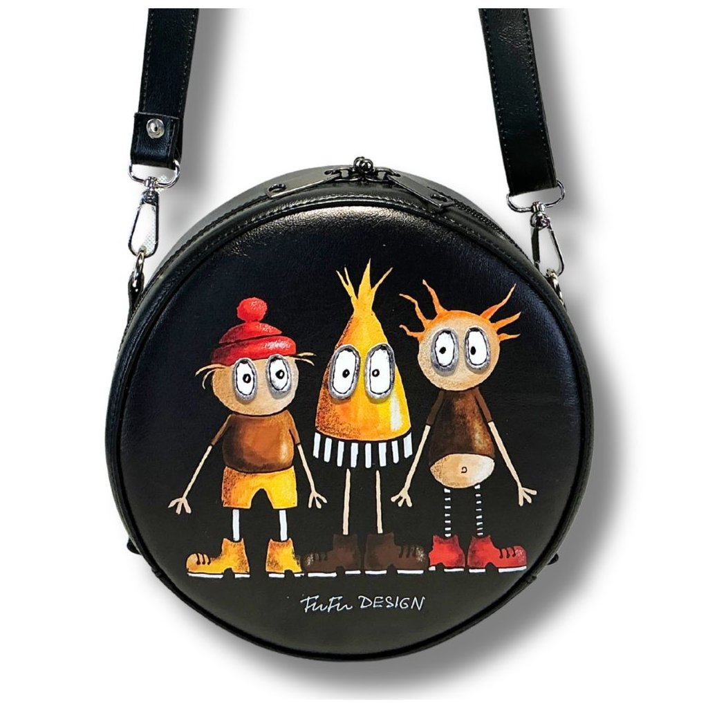 Crossbody kabelka s nastavitelným černým popruhem, který lze odepnout. Kabelku lze nosit na rameni nebo crossbody. Kabelka má zip po obvodu a dá se plně otevřít, takže se do ni skvěle "leze". Díky širokému bočnímu dílu je velmi prostorná. Kvalitní syntetická useň připomínající pravou kůži, skvěle drží kulatý tvar a neošoupe se, neodře se ani opravdu dlouhodobým nošením, stále bude vypadat jako nová.