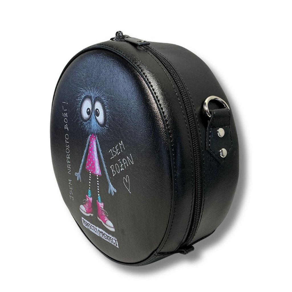 Crossbody kabelka s nastavitelným černým popruhem, který lze odepnout. Kabelku lze nosit na rameni nebo crossbody. Kabelka má zip po obvodu a dá se plně otevřít, takže se do ni skvěle "leze". Díky širokému bočnímu dílu je velmi prostorná. Kvalitní syntetická useň připomínající pravou kůži, skvěle drží kulatý tvar a neošoupe se, neodře se ani opravdu dlouhodobým nošením, stále bude vypadat jako nová.