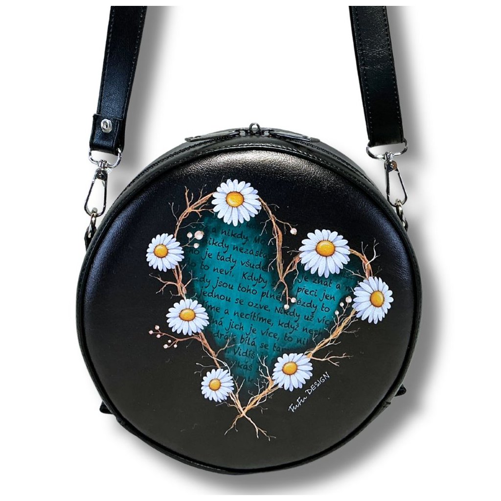 Crossbody kabelka s nastavitelným černým popruhem, který lze odepnout. Kabelku lze nosit na rameni nebo crossbody. Kabelka má zip po obvodu a dá se plně otevřít, takže se do ni skvěle "leze". Díky širokému bočnímu dílu je velmi prostorná. Kvalitní syntetická useň připomínající pravou kůži, skvěle drží kulatý tvar a neošoupe se, neodře se ani opravdu dlouhodobým nošením, stále bude vypadat jako nová.