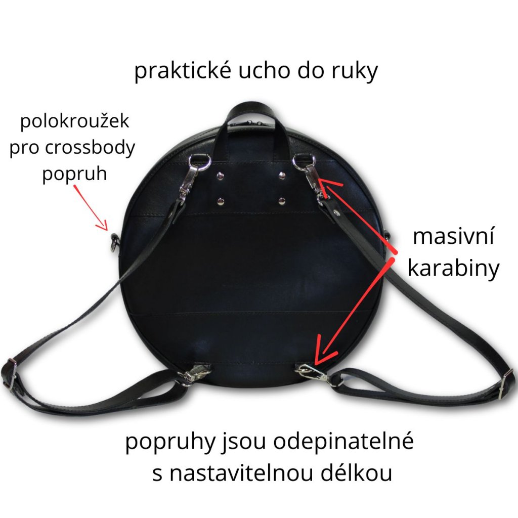 FuFu RoundBag - Kulatá Batohokabelka. "Two Ways to Wear. One Perfect Circle." Dva způsoby nošení. Jeden dokonalý kruh :-). Vhodné na záda jako batoh a zároveň jako crossbody kabelka s dlouhým popruhem. Velmi kvalitní syntetická useň připomínající pravou kůži, skvěle drží tvar a neošoupe se, neodře se ani opravdu dlouhodobým nošením, stále bude vypadat jako nová. Střih s širokým bočním dílem poskytuje velký úložný prostor.