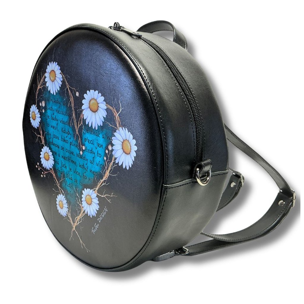 Kulatý Batoh a kabelka v jednom. Vyrobeno z odolné syntetické usně. Možnost přidat crossbody popruh.
