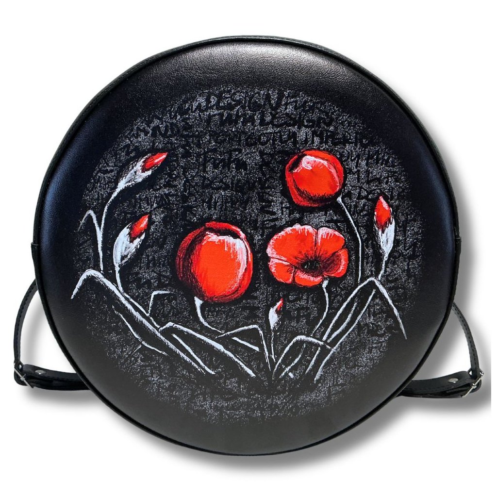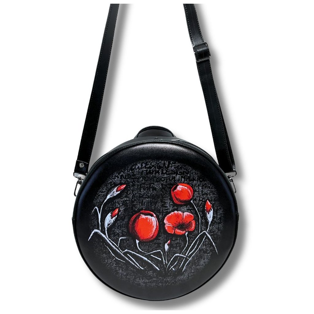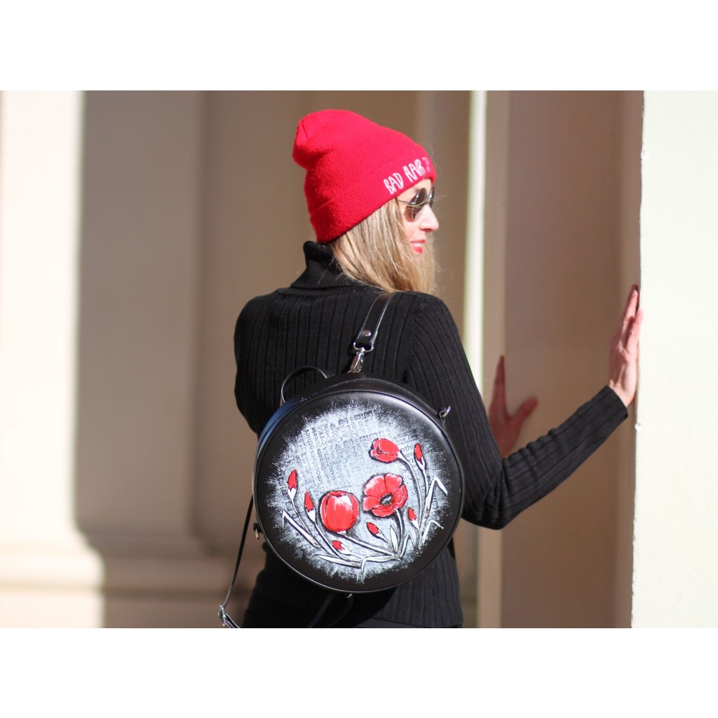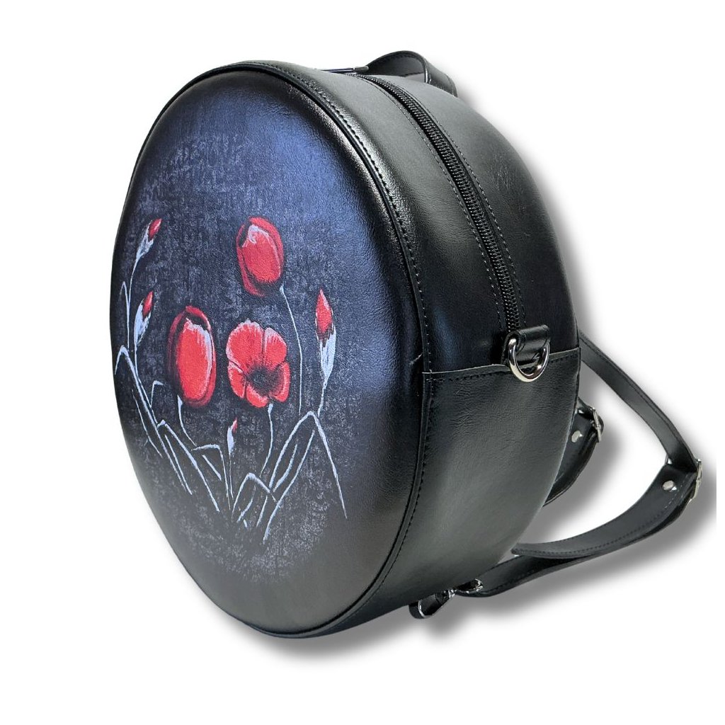 Kulatý Batoh a kabelka v jednom. Vyrobeno z odolné syntetické usně. Možnost přidat crossbody popruh.