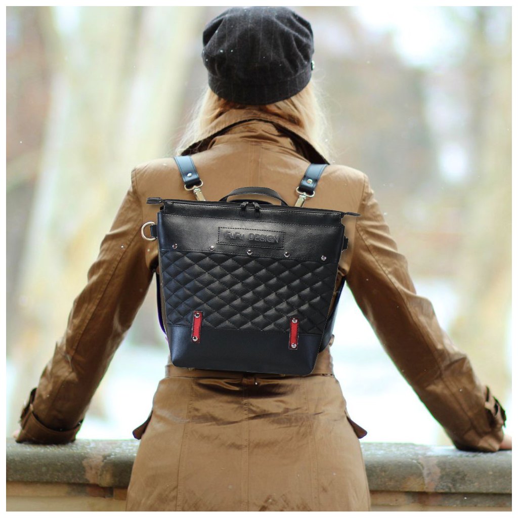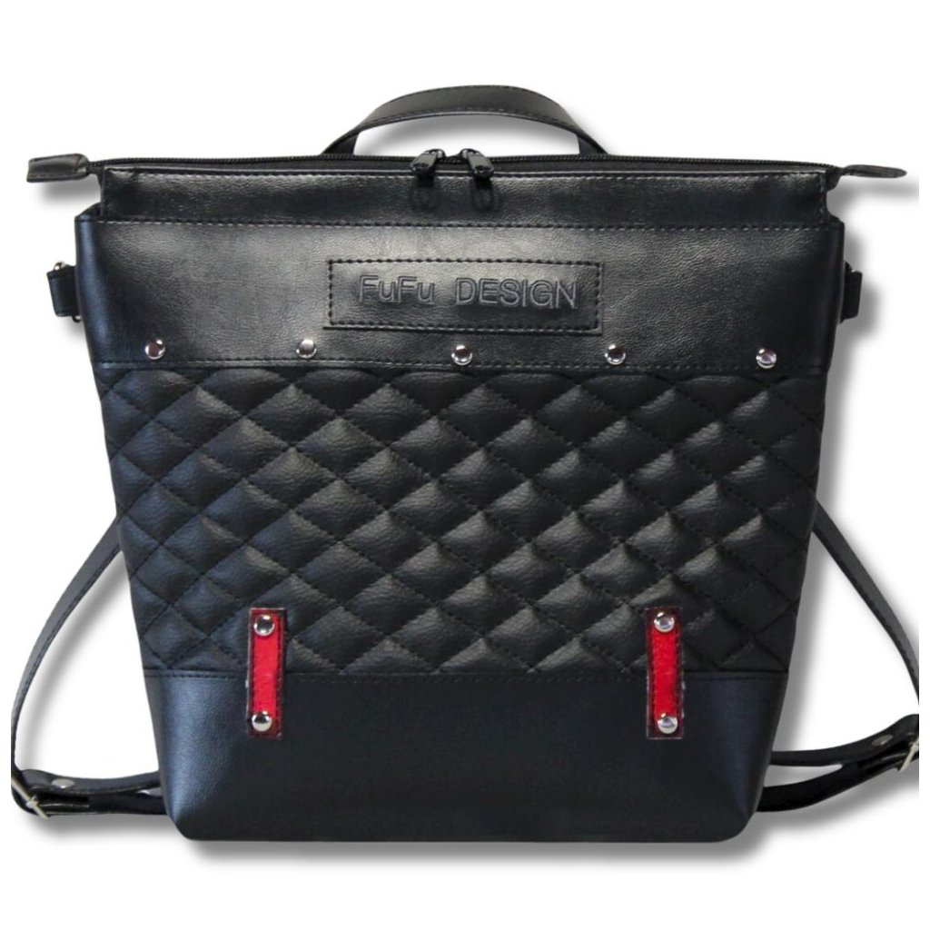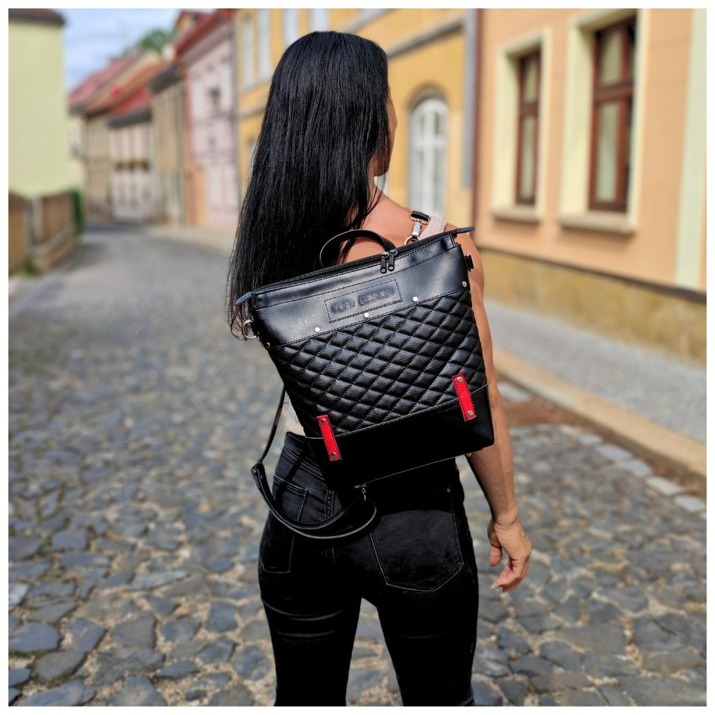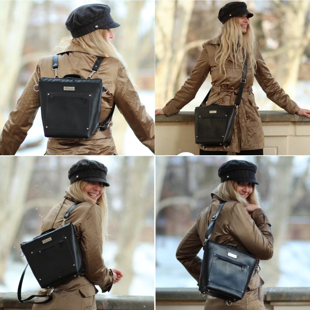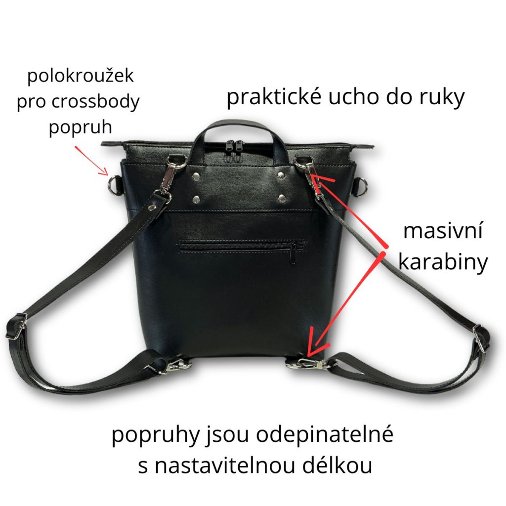 Batoh a kabelka v jednom z odolné syntetické usně. Možnost přidat crossbody popruh.
