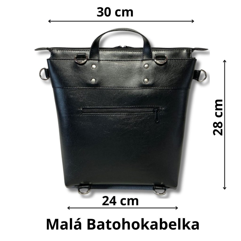 Batohokabelka - na záda jako batoh + jako crossbody kabelka s dlouhým popruhem. Velmi kvalitní syntetická useň připomíná pravou kůži, skvěle drží tvar, neodře se ani dlouhodobým nošením, stále bude vypadat jako nová.