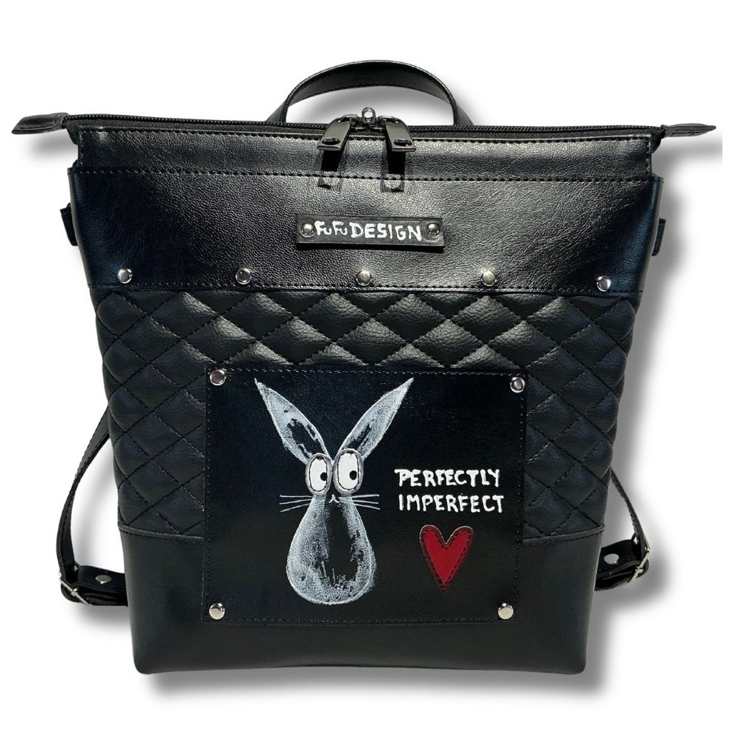 Batoh a kabelka v jednom z odolné syntetické usně. Možnost přidat crossbody popruh.