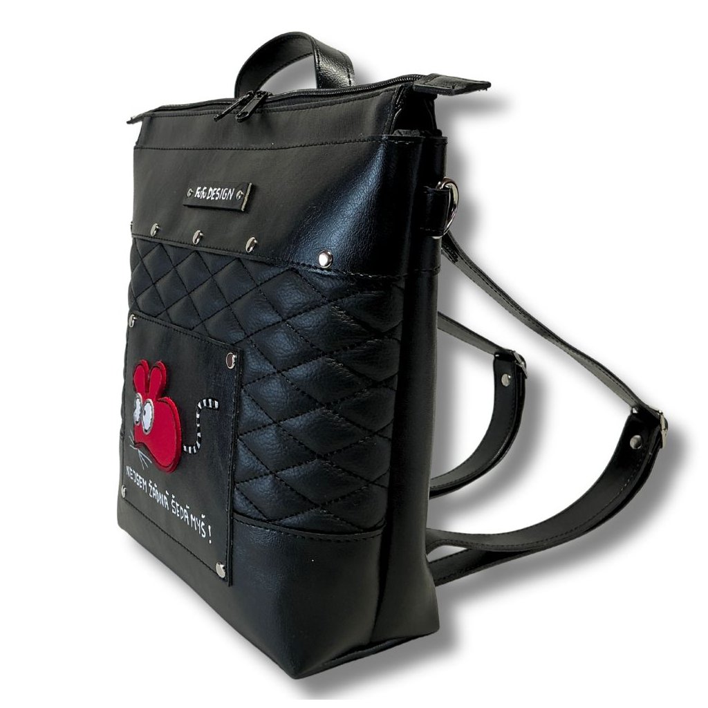 Batoh a kabelka v jednom z odolné syntetické usně. Možnost přidat crossbody popruh.