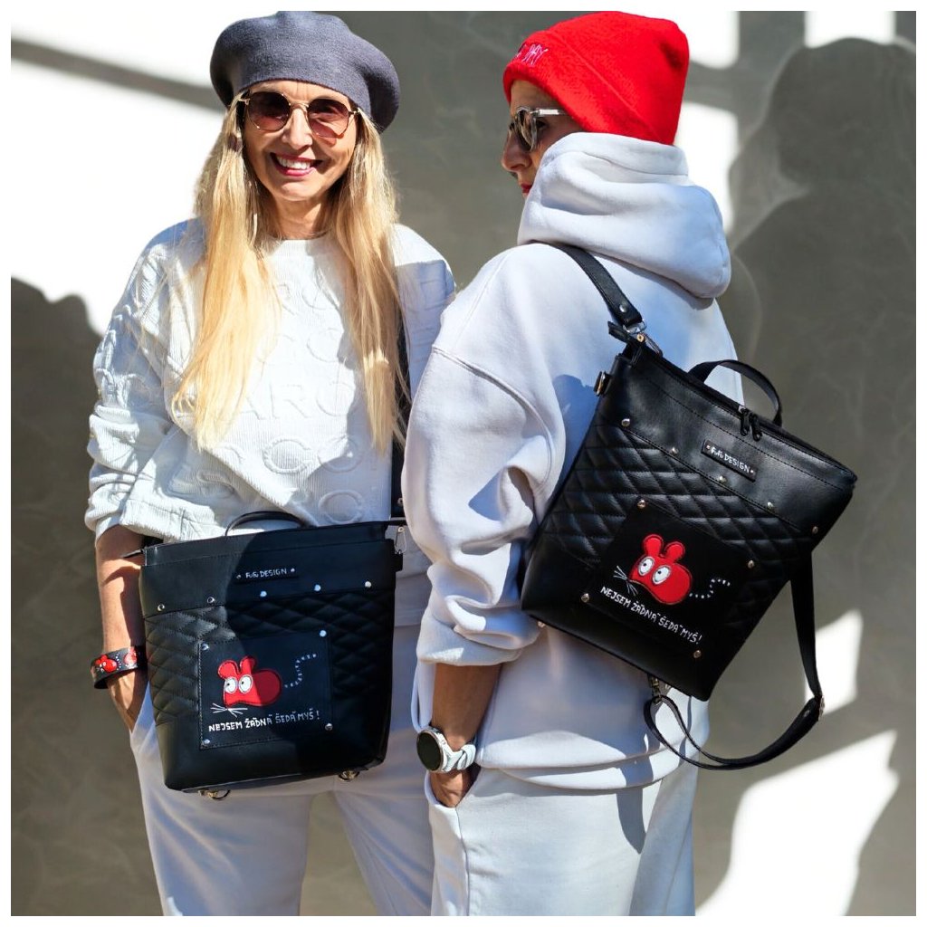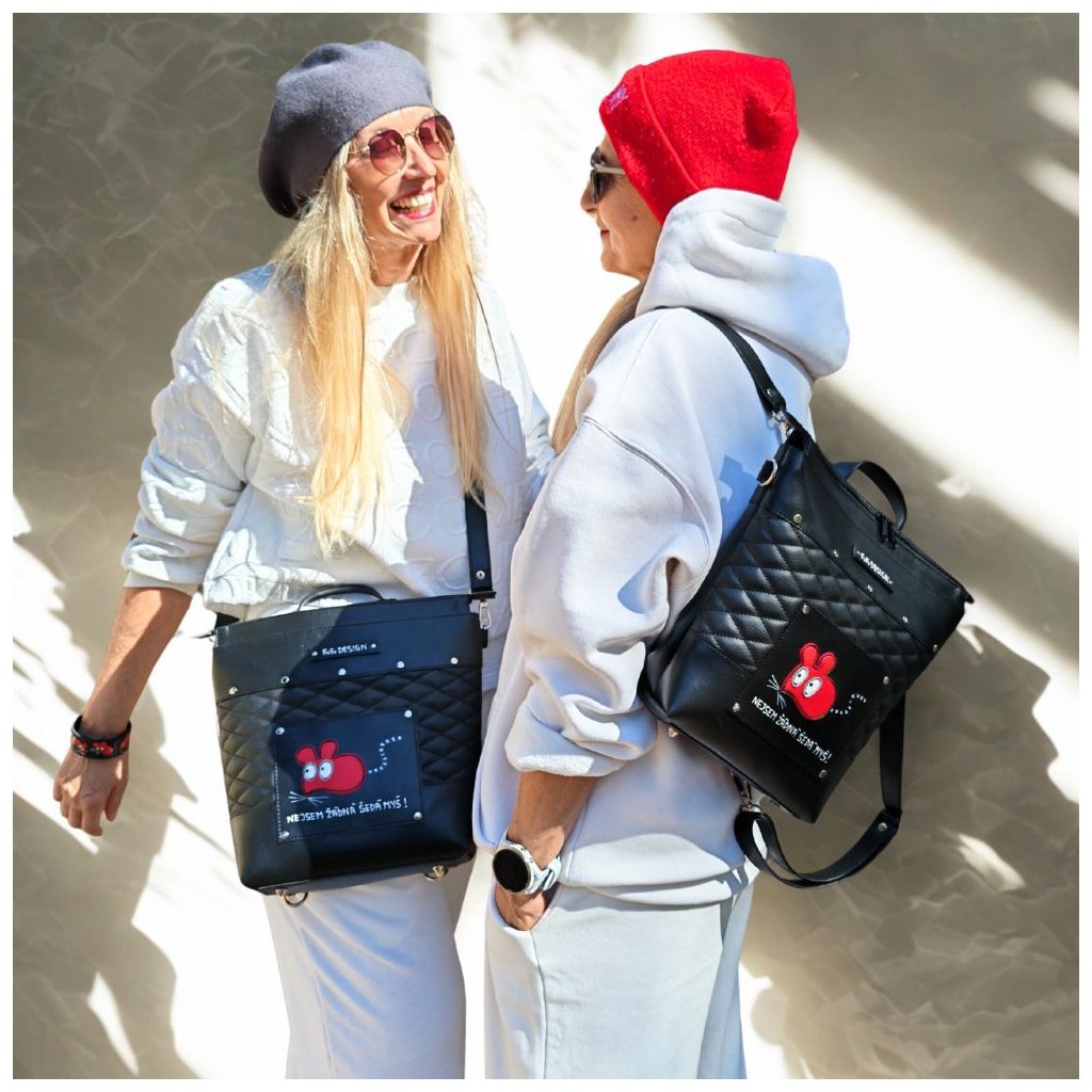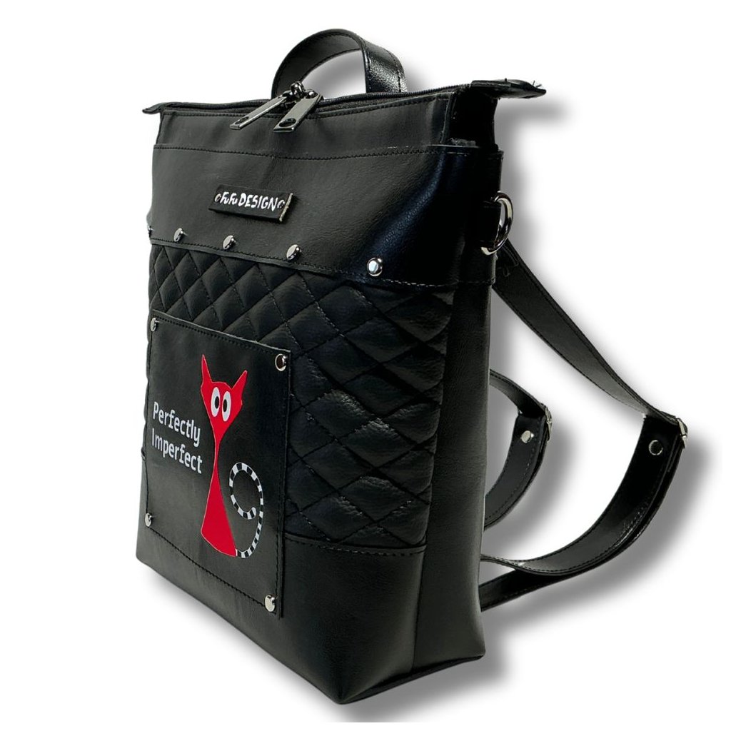 Batoh a kabelka v jednom z odolné syntetické usně. Možnost přidat crossbody popruh.