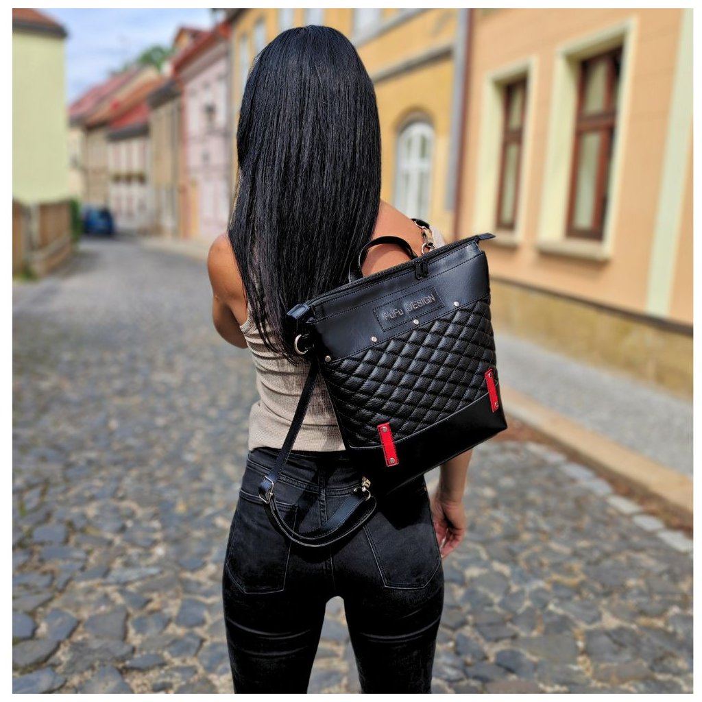 Batoh a kabelka v jednom z odolné syntetické usně. Možnost přidat crossbody popruh.