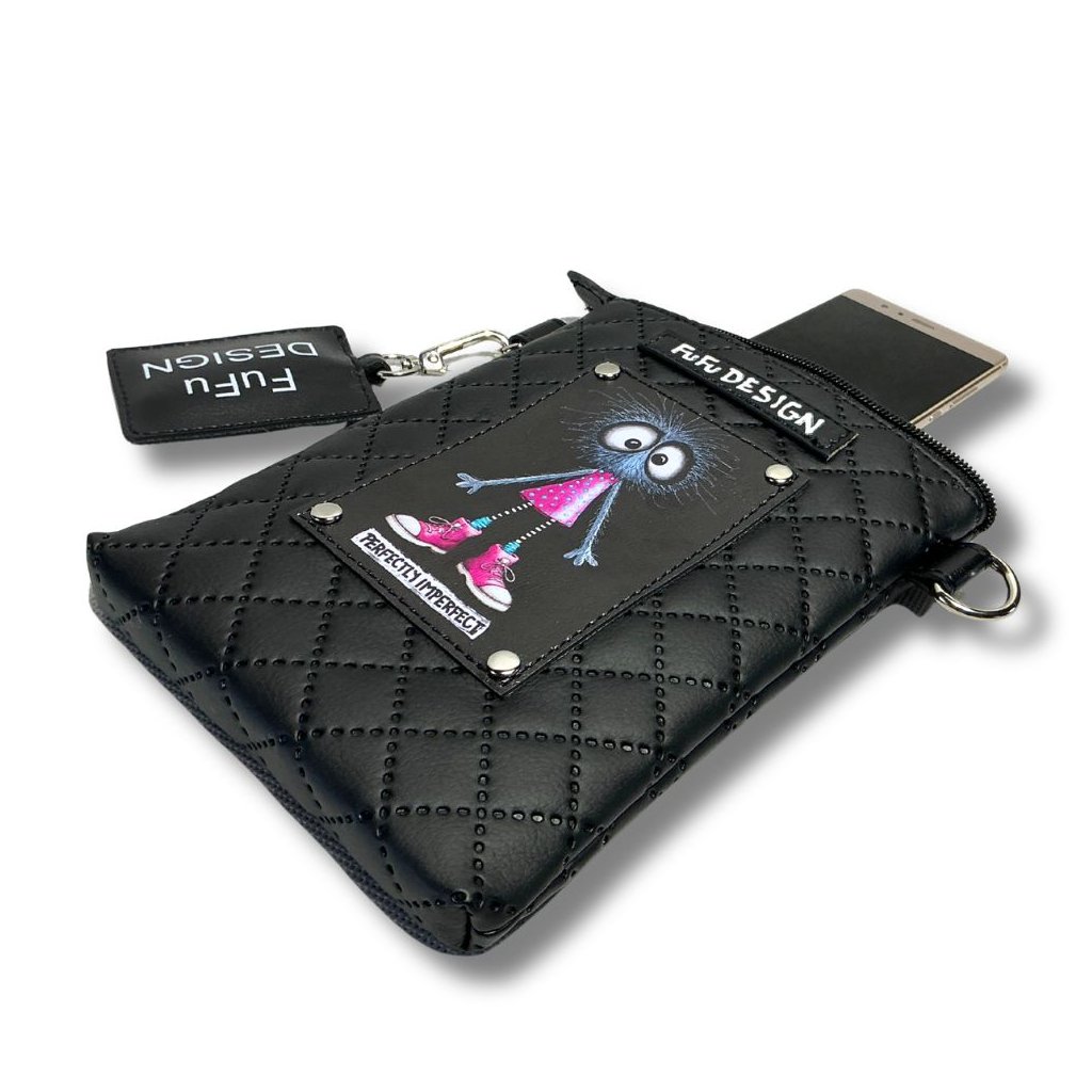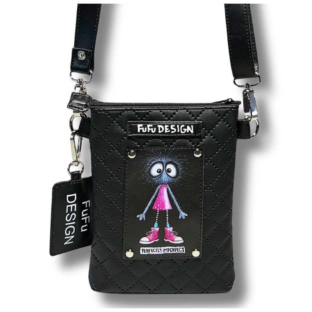 NÁŠ BOŽAN RŮŽOVÝ - Maxi Mobilka s FuFu Božanem (protože je prostě božíííí! :-) – kabelka z měkké eko-kůže nejen na mobil, ale i na docela dost dalších drobnosti - klíče, kapesníky či peníze. Popruh je odepínací, takže kabelku bez popruhu můžete využít i jako pouzdro / taštičku do velké tašky.