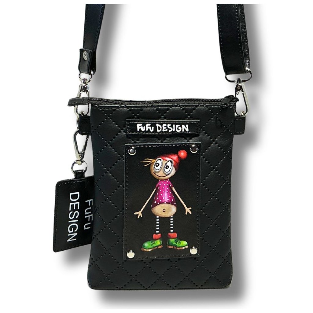 Maxi Mobilka – kabelka z měkké eko-kůže nejen na mobil, ale i na docela dost dalších drobnosti - klíče, kapesníky či peníze. Popruh je odepínací, takže kabelku bez popruhu můžete využít i jako pouzdro / taštičku do velké tašky či kabelky.