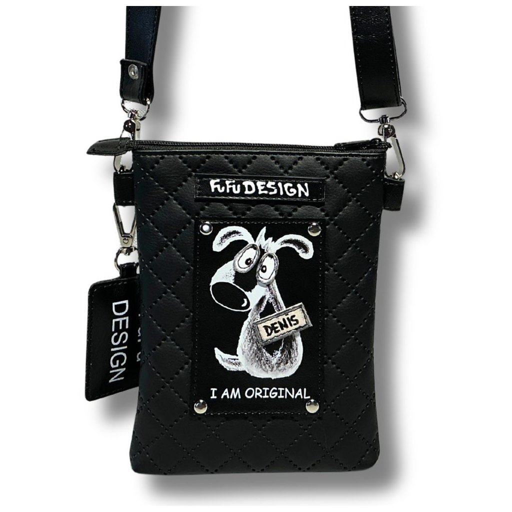 Maxi Mobilka s našim frajerem Denisem– kabelka z měkké eko-kůže nejen na mobil, ale i na docela dost dalších drobnosti - klíče, kapesníky či peníze. Popruh je odepínací, takže kabelku bez popruhu můžete využít i jako pouzdro / taštičku do velké tašky či kabelky.