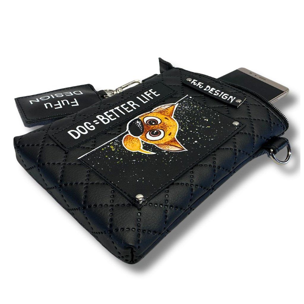 Ručně malovaná Maxi Mobilka z měkké eko-kůže nejen na mobil, ale i na docela dost dalších drobnosti - klíče, kapesníky či peníze. Popruh je odepínací, takže kabelku bez popruhu můžete využít i jako pouzdro / taštičku do velké tašky.