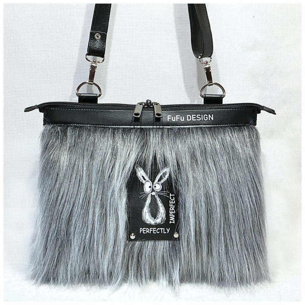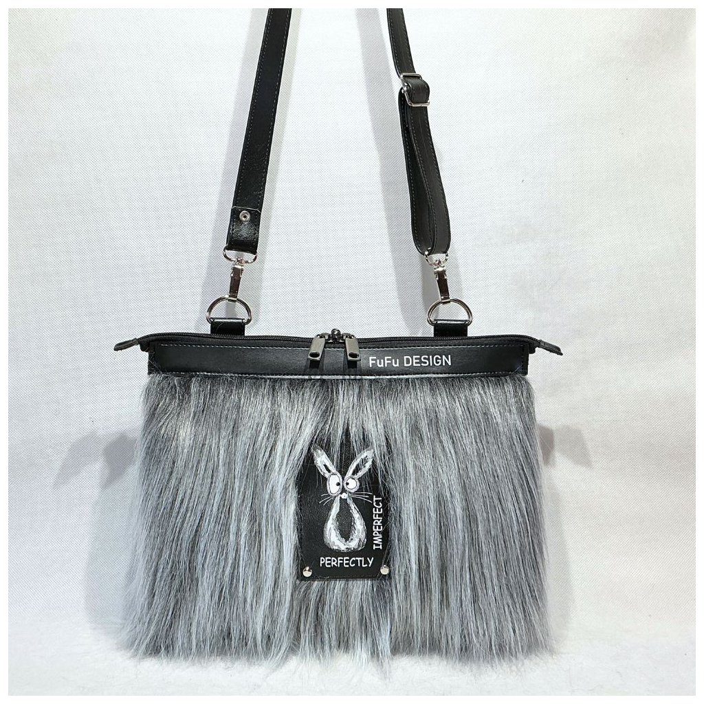 FuFu Muff = kabelka + rukávník v jednom, takže současně máte prostornou kabelku a ruce v teple. Kožešina - šedý melír.