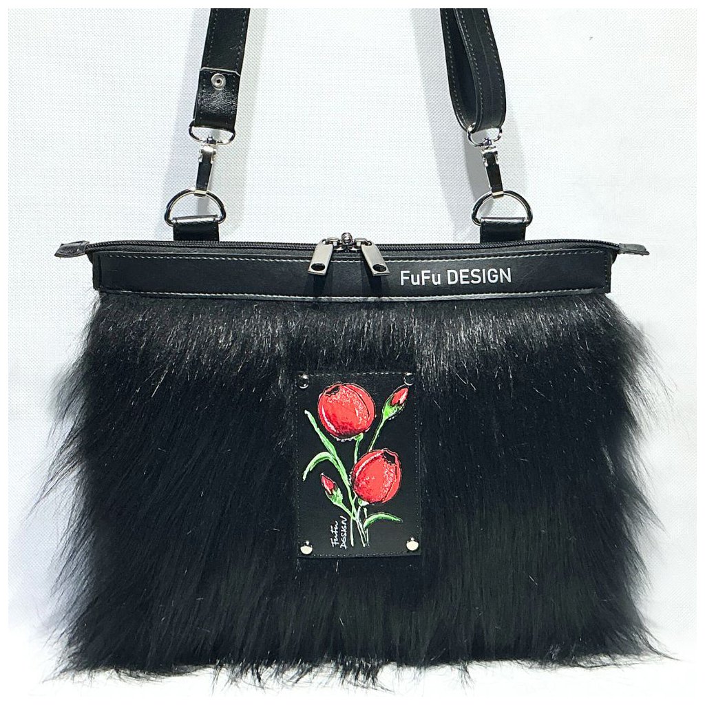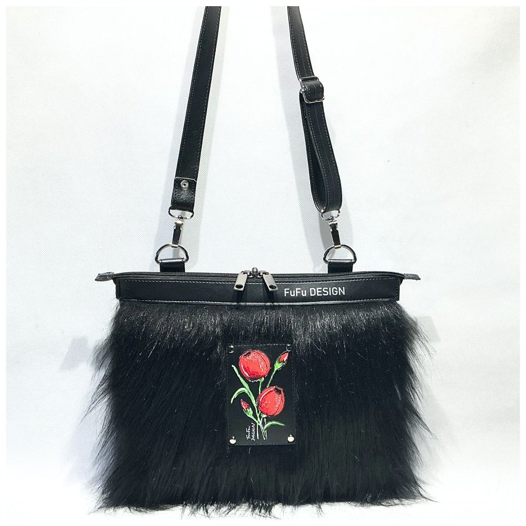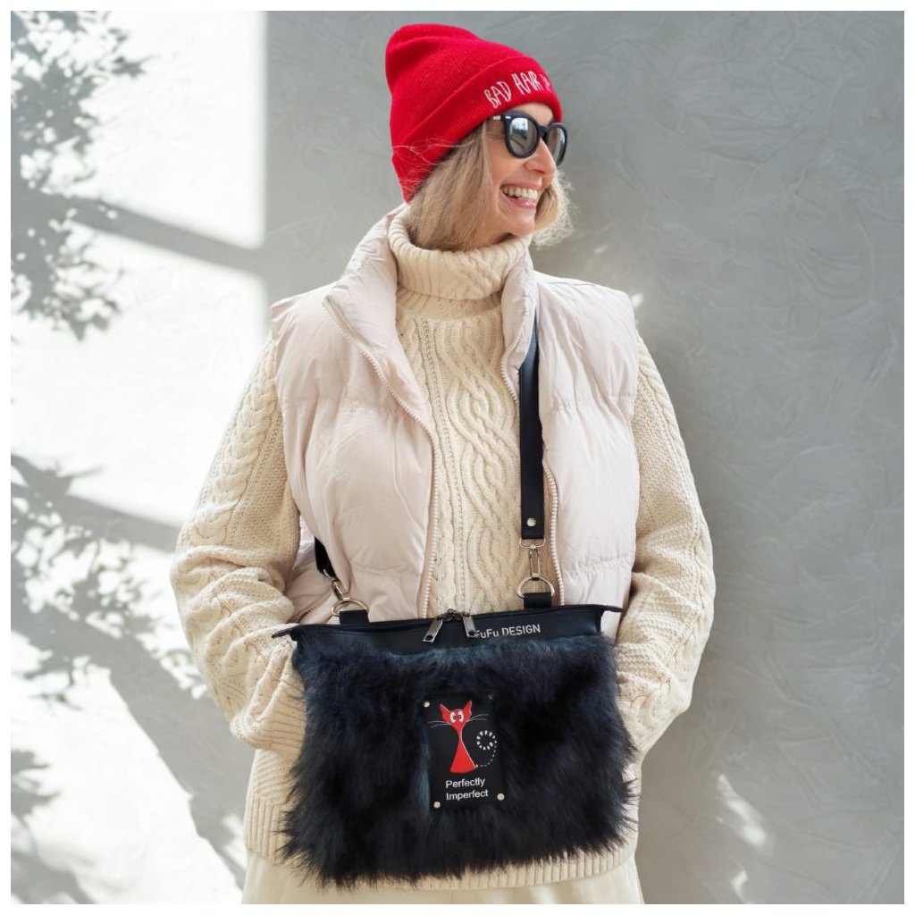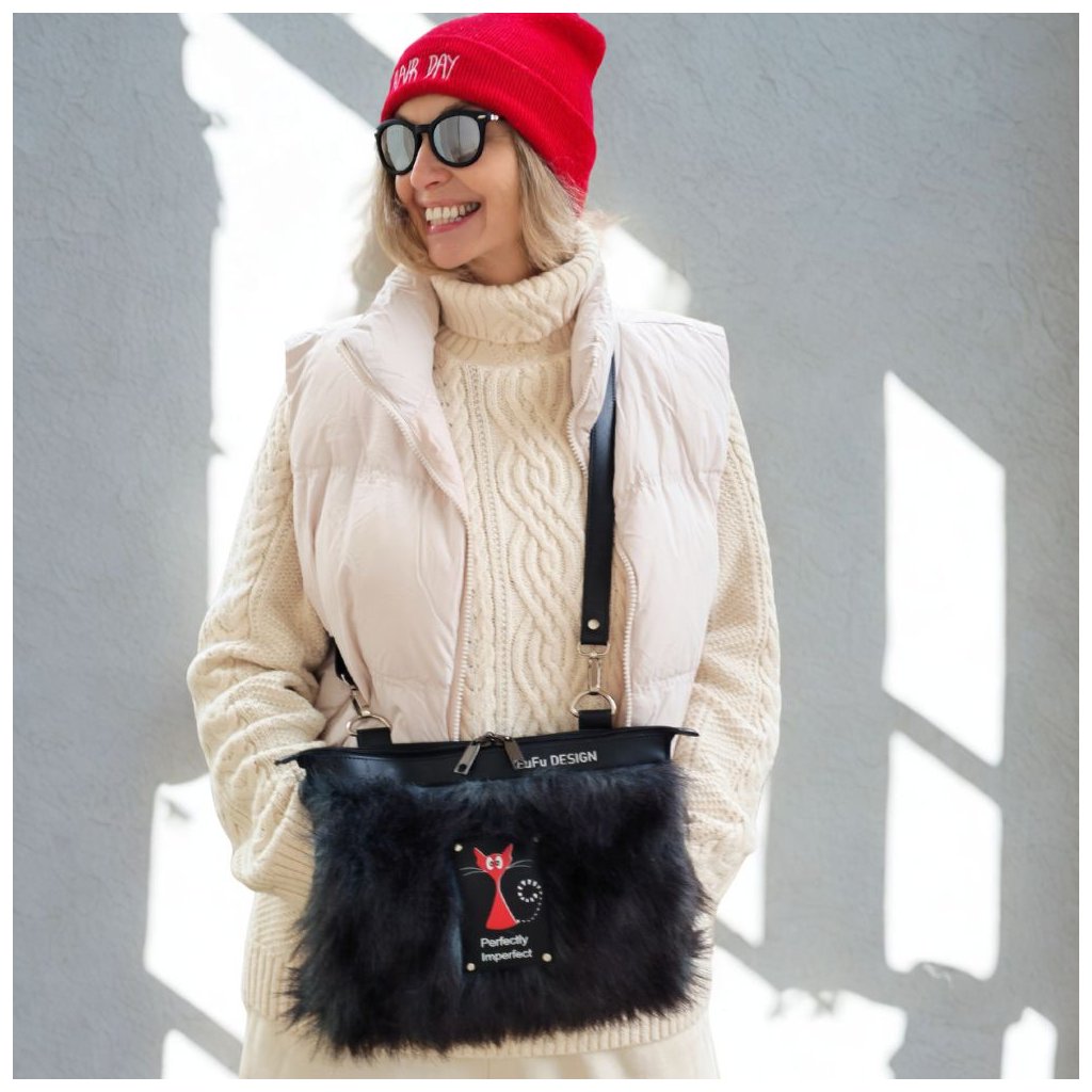 FuFu Muff = kabelka + rukávník v jednom, takže současně máte prostornou kabelku a ruce v teple. Kožešina - sytě černá.