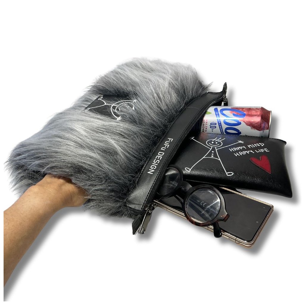 FuFu Muff - kabelka + rukávník v jednom. Luxusní kožešina, teplý fleece a velký úložný prostor na zip. Ruce v teple a velký prostor pro vaše věci.