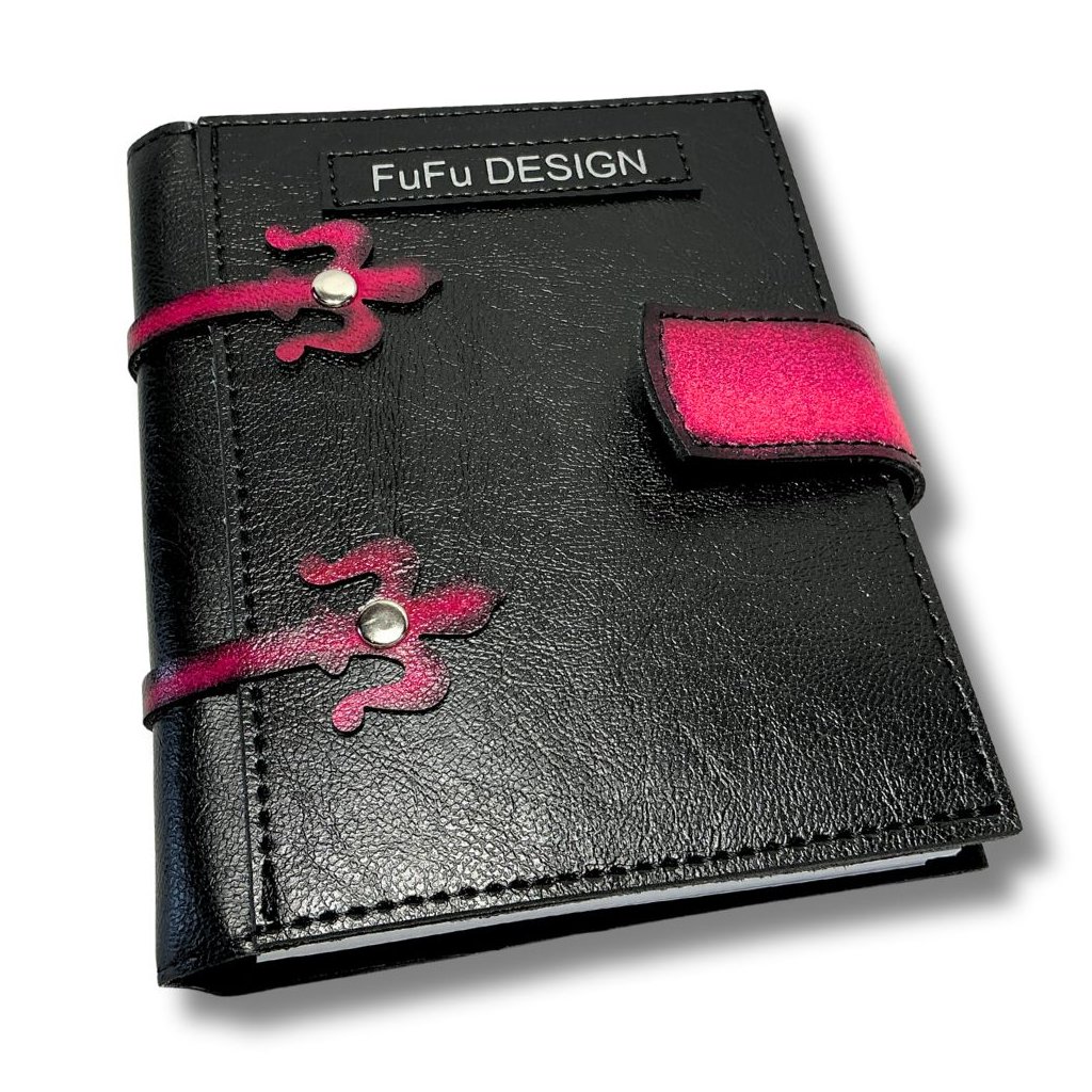 Notes je ručně malovaný, má vyměnitelnou vnitřní část (jedná se o standardní blok A6 linkovaný, 200 sránek), takže až stránky popíšete, jednoduše blok vyměníte za nový. Zapínání na magnet.