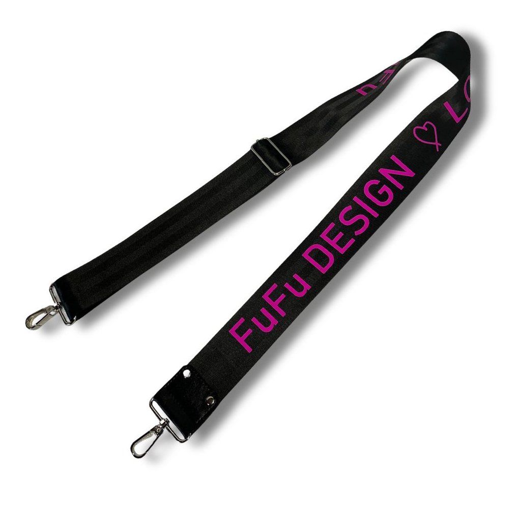 Pevný textilní popruh nastavitelný je potištěn textem. Potištěný široký popruh doladí váš outfit, s ním nebude žádná kabelka obyčejná!
