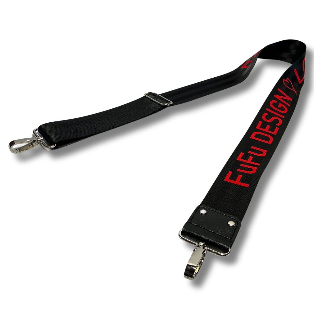 Pevný textilní popruh nastavitelný je potištěn červeným textem. Potištěný široký popruh doladí váš outfit, s ním nebude žádná kabelka obyčejná!