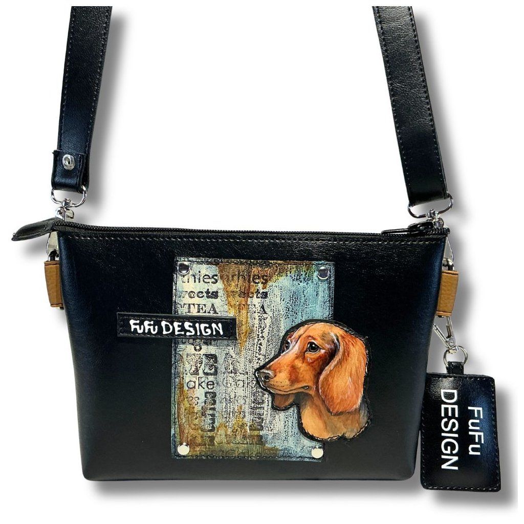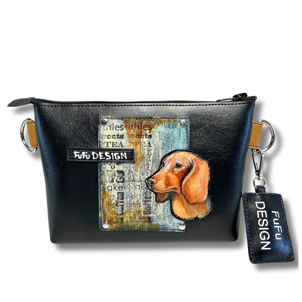 Ručně malovaná Ledvinka / Crossbody kabelka ideální pro pejskaře, vyrobeno z odolné syntetické usně. Nastavitelný popruh.