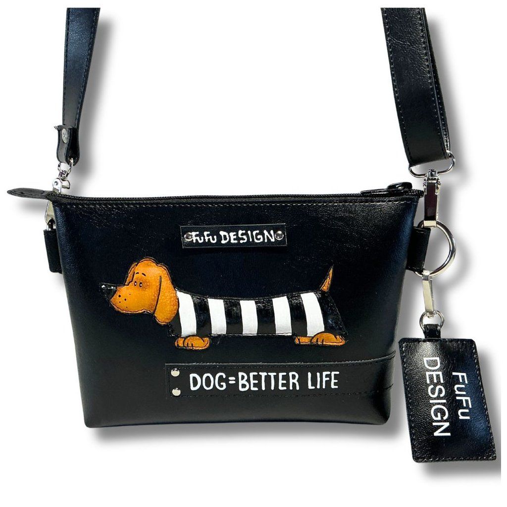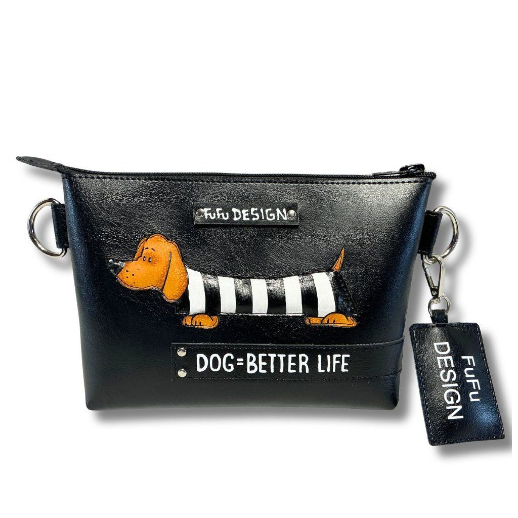 Ručně malovaná Ledvinka / Crossbody kabelka ideální pro pejskaře, vyrobeno z odolné syntetické usně. Nastavitelný popruh.