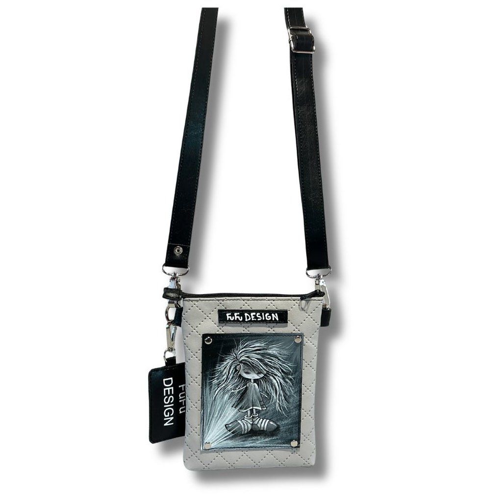 Ručně malovaná Maxi Mobilka – kabelka z měkké eko-kůže nejen na mobil, ale i na docela dost dalších drobnosti - klíče, kapesníky či peníze. Popruh je odepínací, takže kabelku bez popruhu můžete využít i jako pouzdro / taštičku do velké tašky.