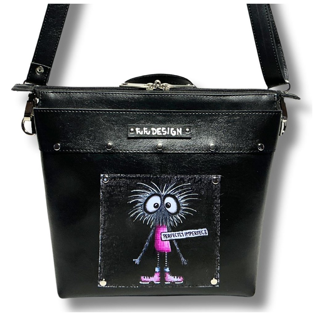 Crossbody kabelka s širokým dnem a nastavitelným černým popruhem, který lze odepnout. Kabelku lze nosit na rameni, crossbody nebo v ruce (má malé ouško do ruky). Velmi kvalitní syntetická useň připomínající pravou kůži, skvěle drží tvar a neošoupe se, neodře se ani opravdu dlouhodobým nošením, stále bude vypadat jako nová.