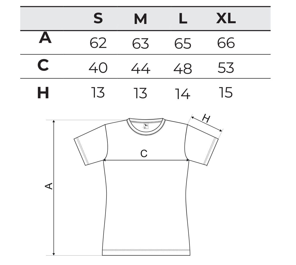 Změřte si své tričko, které vám sedí a podle něj vyberte velikost z tabulky (rozměry jsou v cm)